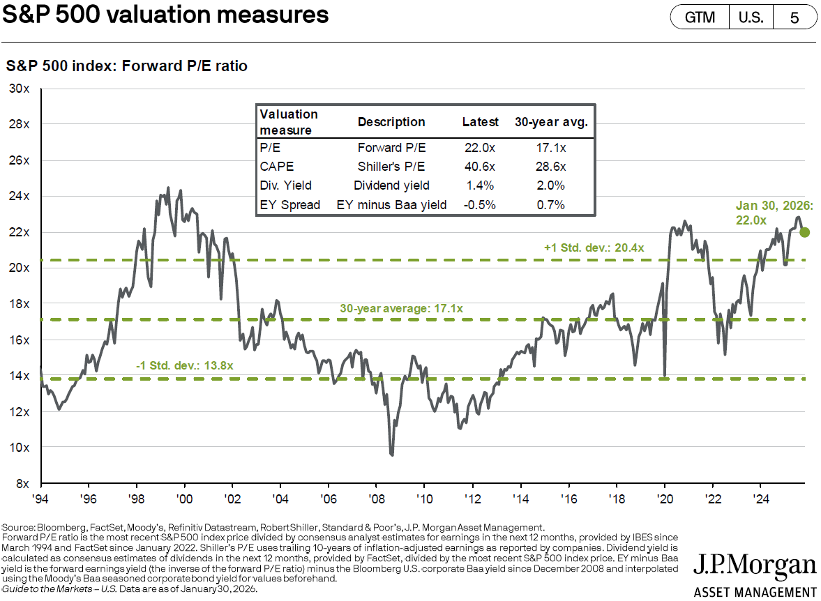 2 “S&P 500 valuation measures,” Slide 5, Guide to the Markets, J.P. Morgan. Jan 31, 2026.