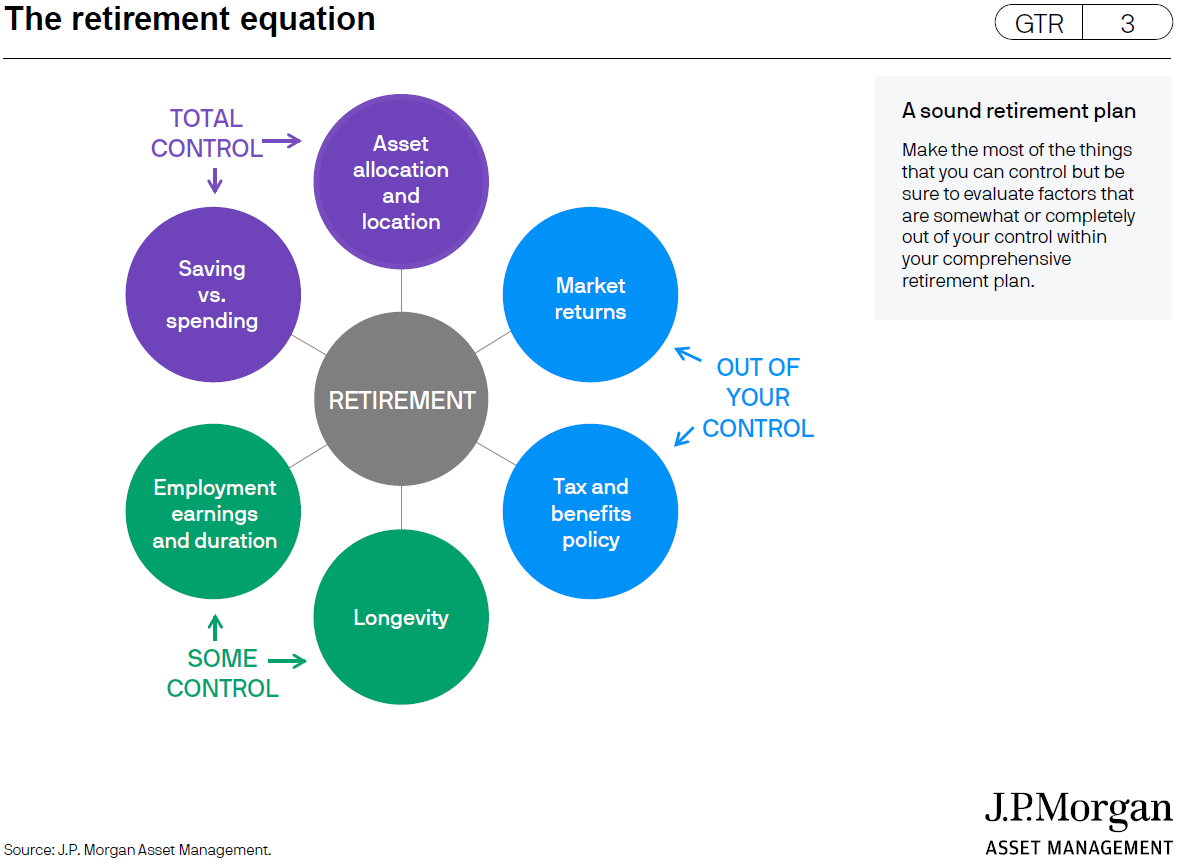 1 “The retirement equation,” Slide 3, Guide to Retirement, J.P. Morgan.  2026.